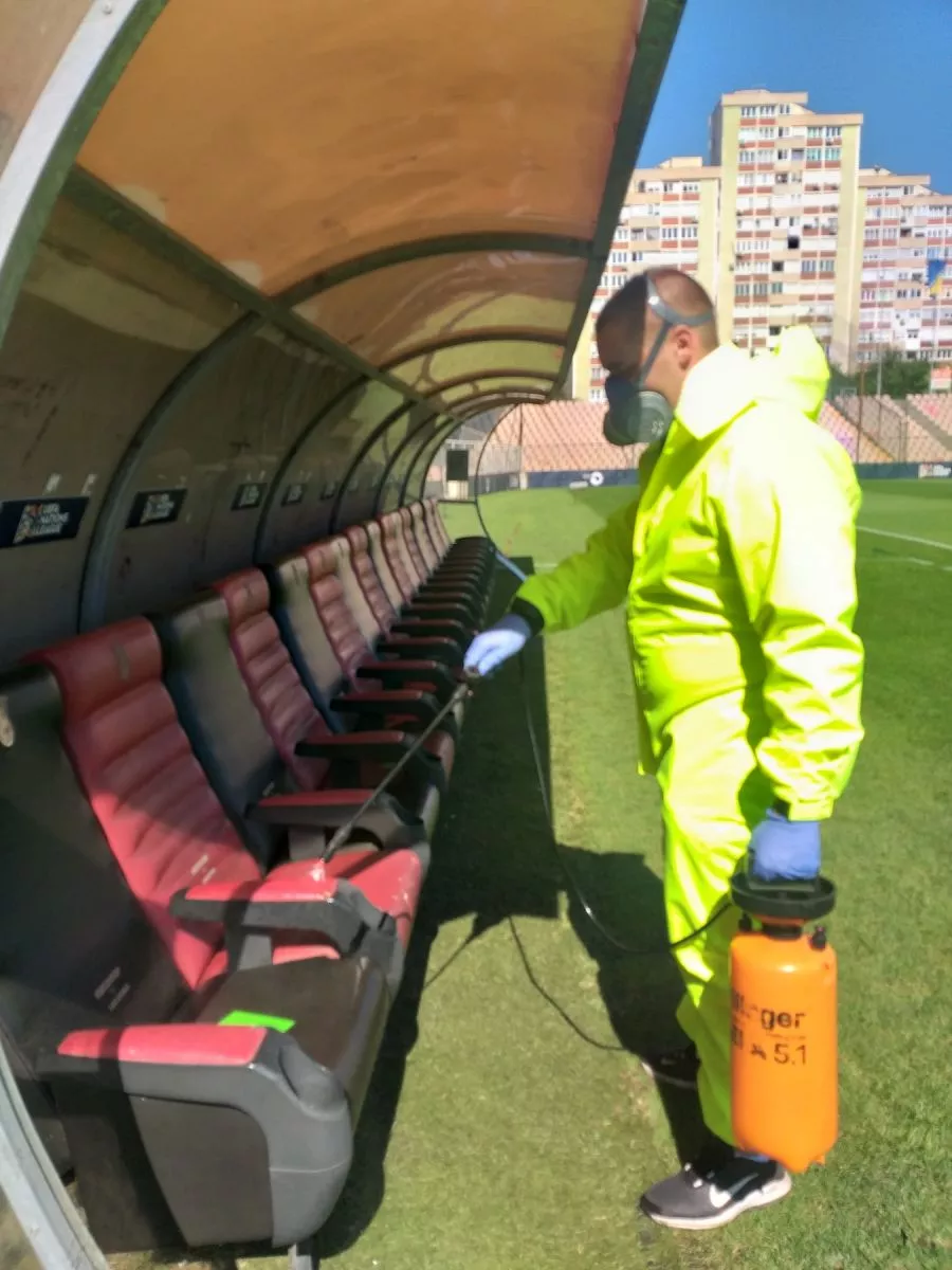 "Još prije desetak dana izrađeni su Plan i Protokol mjera profesionalne dezinfekcije, u više navrata na svim ključnim lokalitetima, uz korištenje dezinekcionih sredstava koja se nalaze na listi dozvoljenih hemijskih sredstava nadležnih organa Evropskog centra za prevenciju i kontrolu bolesti (ECDC). Svaki pojedinačni potez, mjera, korištena oprema poput kombinezona, HTZ opreme, maski sa filterima, motornih i ručnih uređaja za vršenje dezinfekcije, strogo se kontroliraju, prate, evidentiraju. Mogu izraziti zadovoljstvo što su sve naše preporuke, savjeti shvaćeni maksimalno ozbiljno od strane rukovodilaca Centra i ljudi iz Saveza, a to i nije bio problem jer su identični onome što od njih traže međunarodne nogometne asocijacije, kaže načelnik Službe za DDD poslove Instituta Admir Gluhić.
