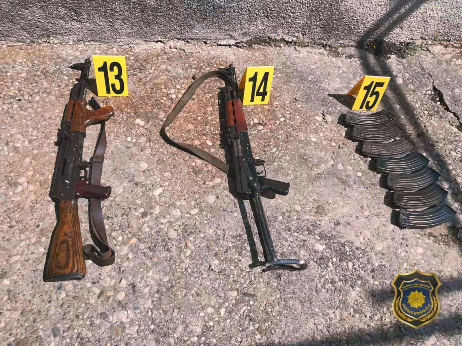 Postupajući po Naredbi Općinskog suda Čitluk, izvršen je pretres na jednoj lokaciji na području općine Čitluk, kojom prilikom je pronađeno 12 zasađenih stabljika koji svojim izgledom asociraju na opojnu drogu canabis sativa L, kao i dvije automatske puške (kalašnjikov) sa 7 okvirova municije, saopćio je FUP.