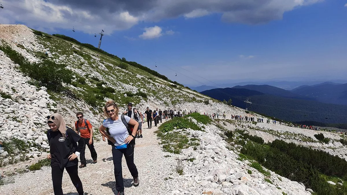 Ako je prošle godine jak vjetar spriječio organizatore da realizuju masovni planinarski pohod na Bjelašnicu, ovaj put vrijeme je bilo naklonjeno: sunčano, uz blagi povjetarac, idealno za provesti dan na 2000 metara. Dok se u gradu živa penjala do 34 stepena, temperatura na Bjelašnici je bila ugodna, oko 26 stepeni.