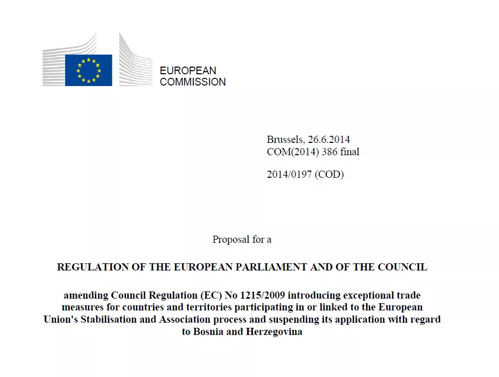 Evropska komisija za proširenje i komesar Štefan File uputili su Vijeću EU i Evropskom parlamentu prijedlog odluke o suspenziji asimetričnog trgovinskog režima sa Bosnom i Hercegovinom od kraja iduće godine.