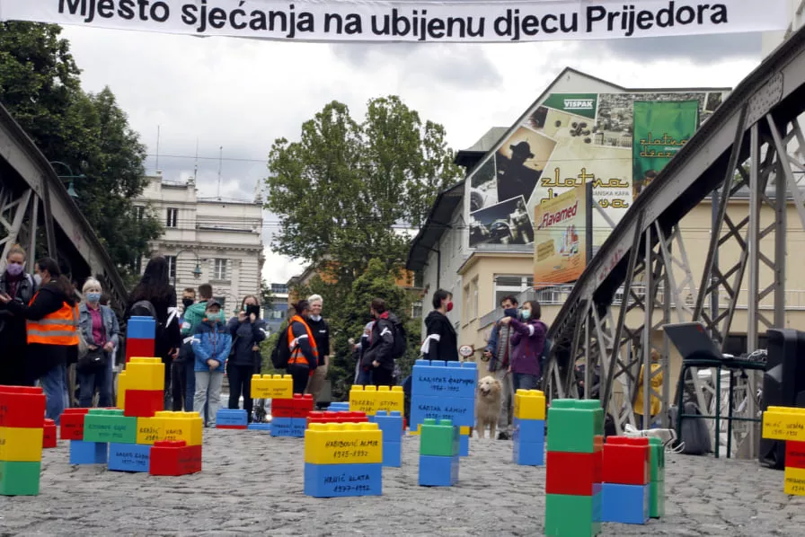 U Sarajevu je na Ajfelovom mostu postavljen privremeni memorijal sa ispisanim imenima 102 djece. A građanima su oko ruke vezane bijele trake. Cvjetovi sa imenima ubijene djece postavljeni su na konstrukciju mosta. Neki od građana su na svoje prozore i balkone izvjesili bijela platna kako bi podsjetili na naredbu koja je izdata 31. maja 1992. godine nesrpskom stanovništvu u Prijedoru da obilježe svoje kuće, a oko ruke stave bijele trake.