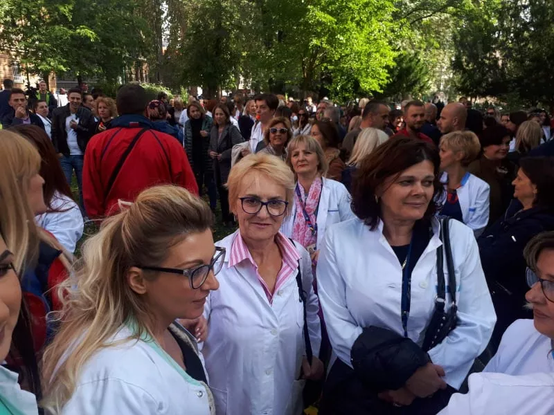 Okupljenima se obratio Edo Selimić, predsjednik Sindikata radnika u zdravstvu Kantona Sarajevo, koji se izvinio pacijentima zbog cijele situacije.