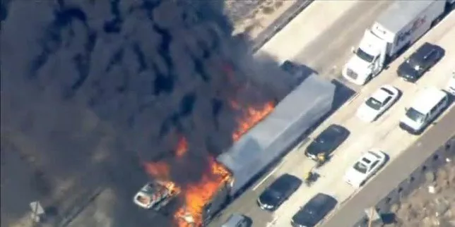 Dvadesetak vozila koja su se našla na putu širenja šumskog požara uništena su na državnoj cesti koja spaja Los Angeles i Las Vegas, prenosi novinska agencija Patria.