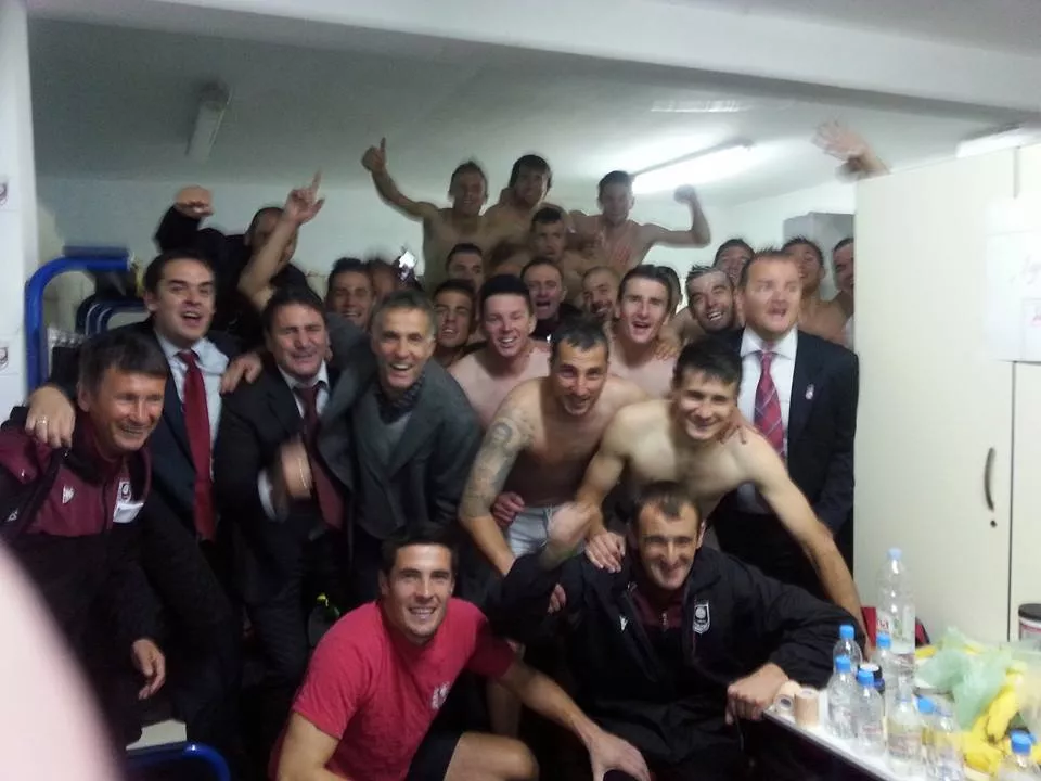 Trener Bordo-bijelih Meho Kodro čestitao je svojim igračima, a fantastična atmosfera bila je u svlačionici. Inače, ovo je prvi derbi Kodre otkako je krajem septembra preuzeo FK Sarajevo.