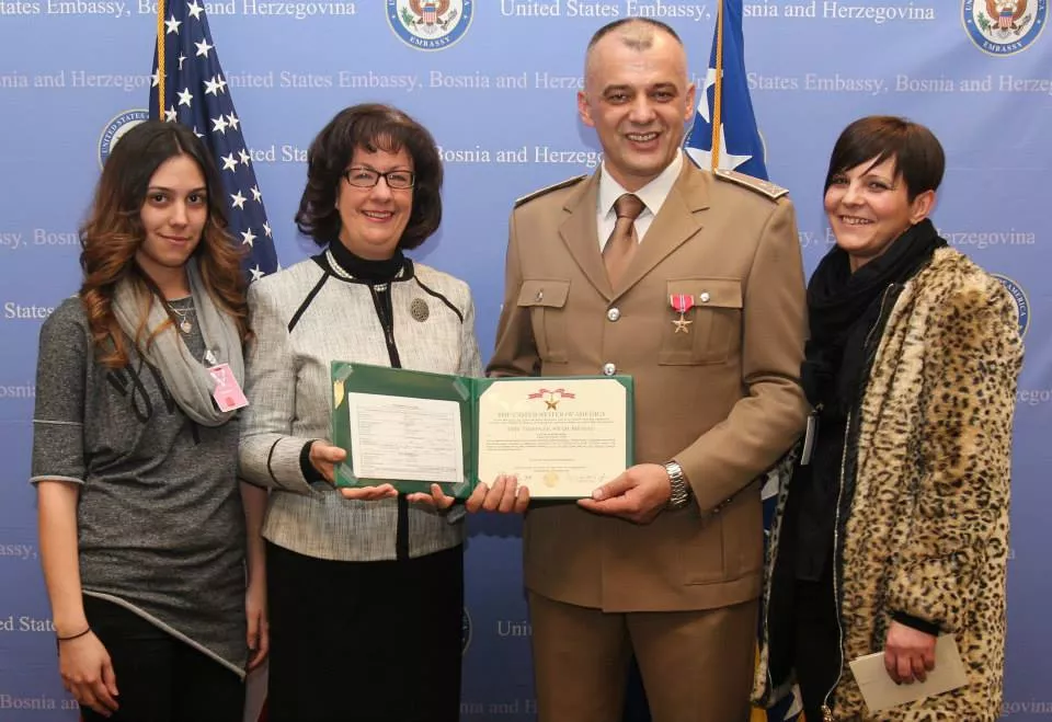 Ambasadorica SAD u BiH Maureen Cormack uručila je u ponedjeljak priznanja majoru Marinku Romiću, kapetanu Miralemu Čaniću i poručniku Hamdiji Elezoviću za liderstvo koje su pokazali kao pripadnici 115. bataljona Vojne policije u sklopu združene mirovne misije u Afganistanu, prenosi bh. novinska agencija Patria.
