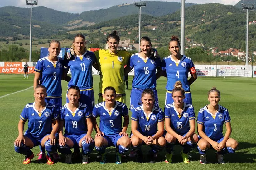 Prvi 11 nogometašica koje je trener BiH Nikola Nikić izveo na teren su: Melani Mustafić, Ulmija Lužić, Andrea Grebenar, Mirha Hadžo, Albina Butković, Amra Isaković, Ajla Pašalić, Dajana Spasojević, Nataša Radulović, Josipa Strukar, Lejla Koluh.