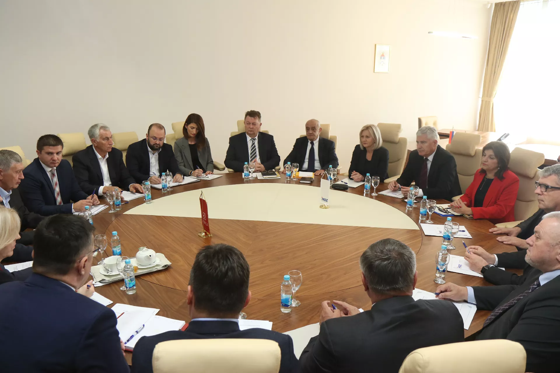 ISTOČNO SARAJEVO, (Patria) - U Administrativnom centru Vlade Republike Srpske u Istočnom Sarajevu počeo je sastanak stranačkih delegacija SNSD-a i HDZ-a BiH, predvođenih stranačkim predsjednicima Miloradom Dodikom i Draganom Čovićem.