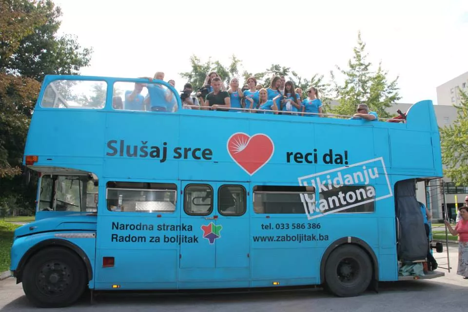 Autobus NSRzB, kojim putuju članovi stranke u narednih 30 dana obići će sve gradove u BiH, a lideri stranke su nekoliko puta ponovili kako je njihov program, bez obzira na sva posljednja događanja, pobjednički, prenosi Patria.