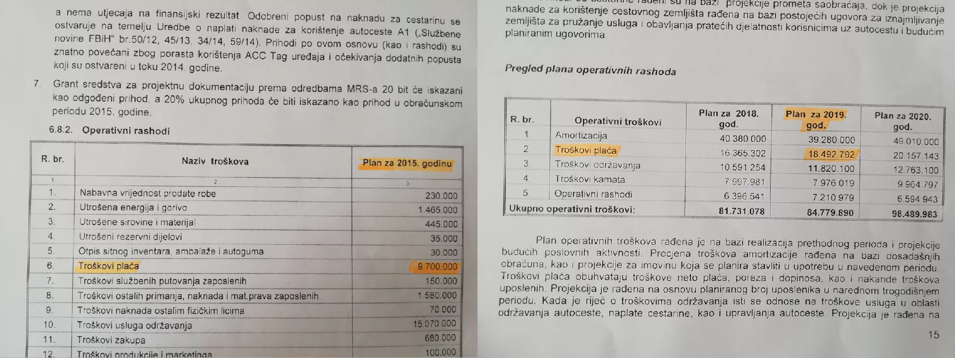 Napomene radi, za 2015. godinu je planiran rashod plata u iznosu od 9.700.000, dok je za 2019. godinu planirano 18.492.792 KM. Enormno povećanje stavke za plate bez i jedne nove naplatne kućice, bez i jednog novog metra autoputa za održavanje, ukazuju jasno da se radi o uništavanju još jednog državnog preduzeća i pljački građana, a na šta je Socijaldemokratska partija Bosne i Hercegovine (SDP BiH) i ranije upozoravala.