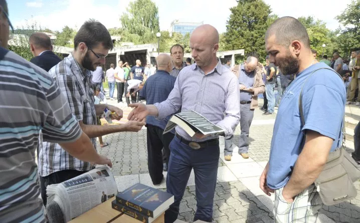 Bilten SDA dijeljen je ispred Jordanske džamije u Sarajevu, džamije Magribija na Marindvoru, ali i nekih drugih džamija u Sarajevu.