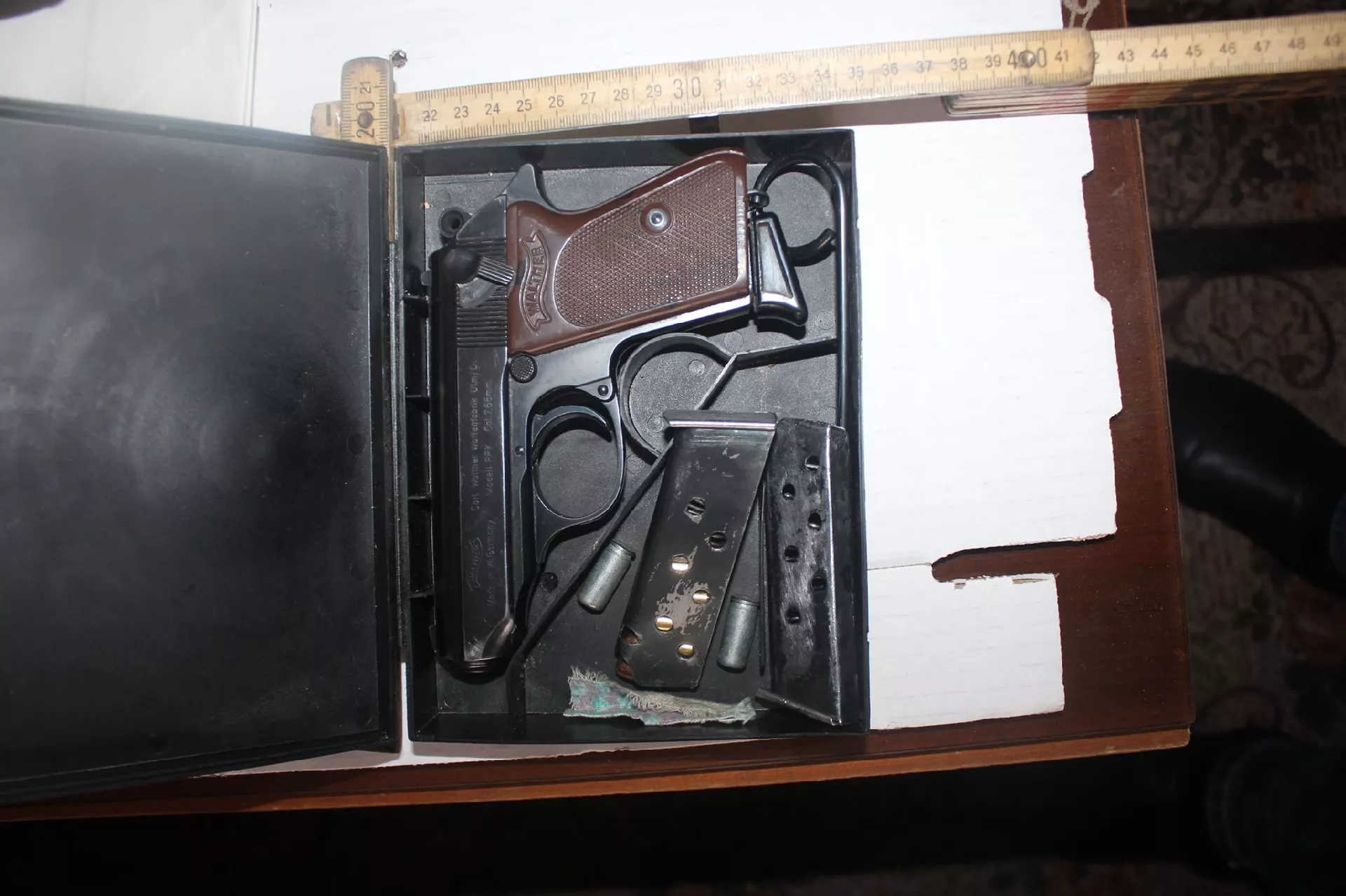 Prilikom pretresa su pronađeni i oduzeti sljedeći predmeti: pištolj cal. 7,65 mm, veća količina bakarnog posuđa, 4 manja pakovanja pvc folije u kojoj se nalazila biljna materija koja svojim izgledom asocira na opojnu drogu Canabis-Sativa (oko 50 grama), određena količina biljne materije upakovana u pvc foliju, koja svojim izgledom asocira na opojnu drogu Canabis-Marihuana i digitalna vaga.