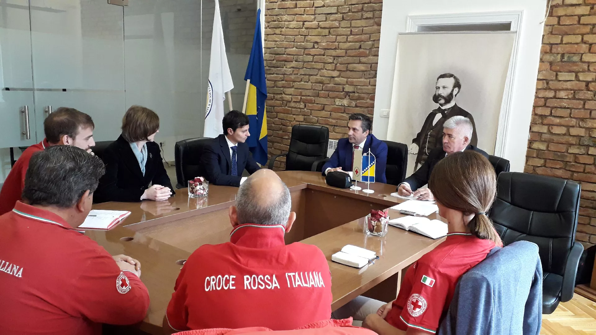 Branko Leko, generalni sekretar Društva Crvenog krsta/križa BiH zahvalio se Nikoli Minasiju, Ambasadoru Italije u BiH koji svojim današnjim prisustvom zvaničnoj primopredaji donacije daje podršku Društvu Crvenog krsta/križa BiH, Crvenom križu Italije ali i izbjeglicama i migrantima i lokalnom stanovništvu koje je u potrebi.