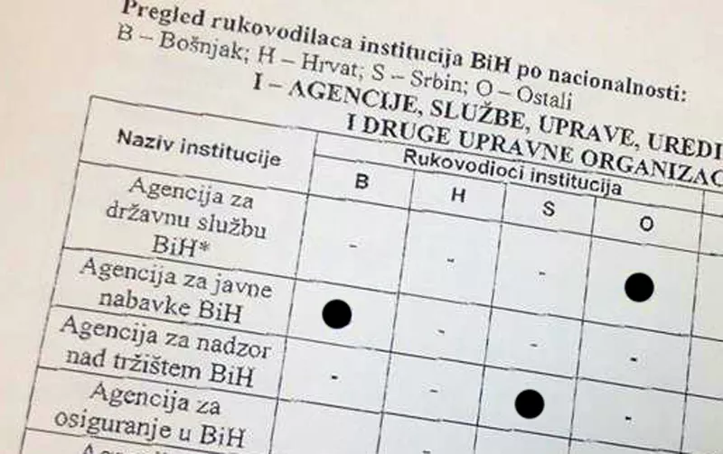 S druge strane, predstavnici iz reda bošnjačkog naroda najčešće se nalaze na prvim pozicijama manje značajnih državnih institucija kao što su Agencija za javne nabavke, Agencija za sigurnost hrane ili, recimo, Institut za mjeriteljstvo.