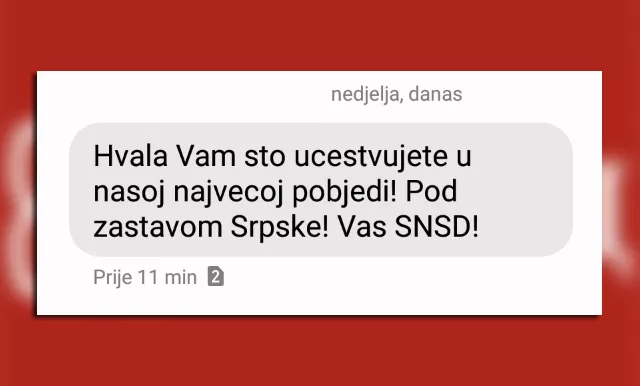 Poruke koju su poslane na brojeve mobilnih telefona sa predznakom "066" glase: „Hvala vam što učestvujete u našoj najvećoj pobjedi! Pod zastavom Srpske! Vaš SNSD!"