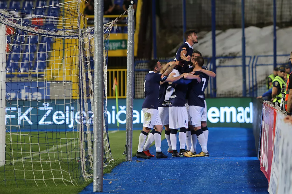 Hadžićev mlak pokušaj iz 38. minuti hvata Kjosevski. Šabanadžović u 44. minuti makazicama šutira, Lučić brani. Na poluvrijeme se otišlo sa 1:0.