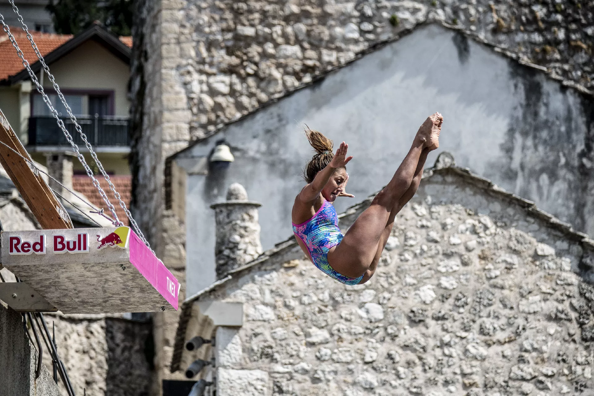 MOSTAR, (Patria) - Prvi dan takmičenja Red Bull Cliff Diving Svjetskog prvenstva u Mostaru donio je niz sjajnih i atraktivnih skokova, a vodeće pozicije je nakon prve dvije serije skokova zauzelo dvoje Meksikanaca: Jonathan Paredes u muškoj i Adriana Jimenez u ženskoj konkurenciji.