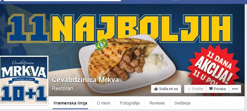 - Kada vam u pola somuna dođe najboljih 11, ne radi se o ćevapu viška, nego o najboljoj mjeri za glasnije navijanje. U svim objektima Ćevabdžinica Mrkva, od 15. do 25. juna, popularnu desetku mijenja 11 najboljih - Brazilska porcija sarajevskih ćevapa. Za istu cijenu naravno – navode iz Mrkve, javlja NAP.