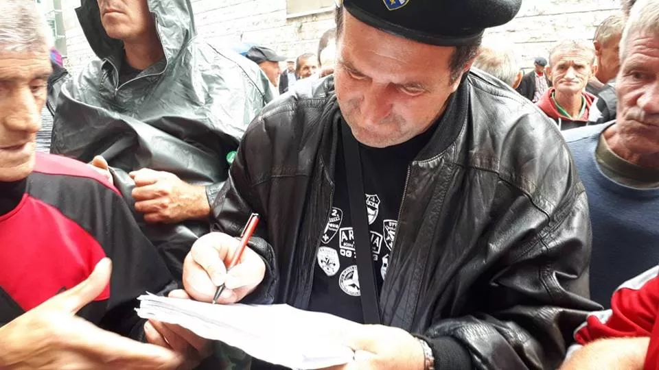 SARAJEVO, (Patria) - Demobilisani borci koji se nalaze pred zgradom Federalnog parlameta potpisuju peticiju kojom traže politički azil od OHR-a i Delegacije EU.