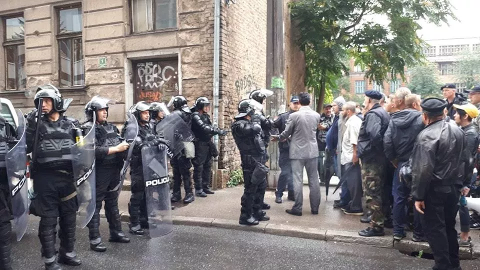 14:00 - Glavna saobraćajnica je deblokirana, a borci se kreću trotoarom uz pratnju kordona policije. Putem megafona borci govore da su napadnuti, pogođeni suzavcem i udarani pendrekom.