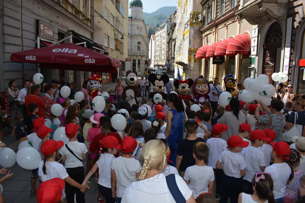 Vesela kolona predvođena maskotama Minnie, Mickey Mouse, Spiderman i Hulk su obišli i jedan veseli krug ulicama Zelenih beretki, Zlatarska, Ferhadija i povratak u Štrosmajerovu, a privukli su pažnju velikog broja prolaznika, ali i stranih turista. Program „Dani djeteta“ organizuje Služba za obrazovanje, kulturu i sport Općine Stari Grad povodom završetka školske godine kao i Međunarodnog Dana djeteta, koji se obilježava u ovom mjesecu, a trajat će do 20. juna.