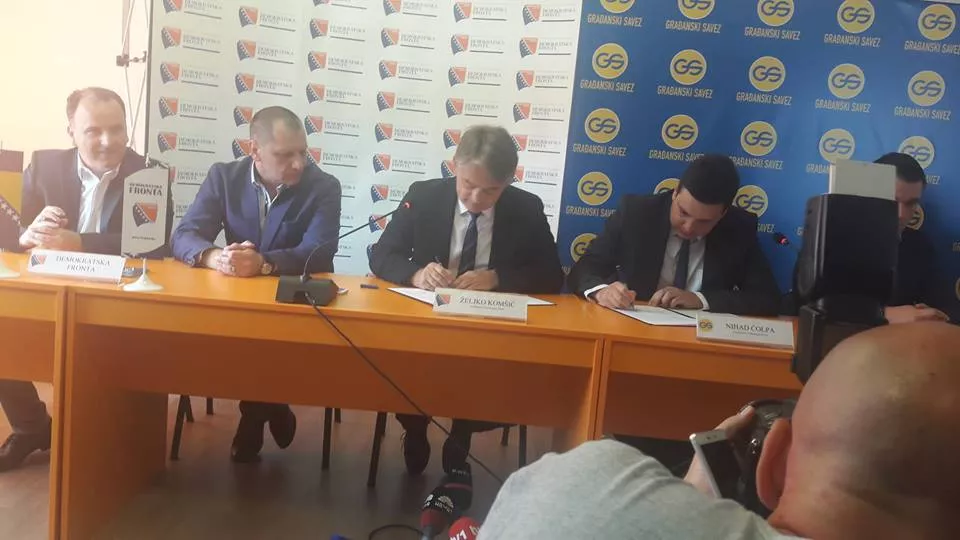SARAJEVO, (Patria) - Demokratska fronta i Građanski savez danas su ozvaničili zajednički nastup na predstojećim Općim izborima a potpisali su je predsjednici stranaka Željko Komšić i Nihad Čolpa.