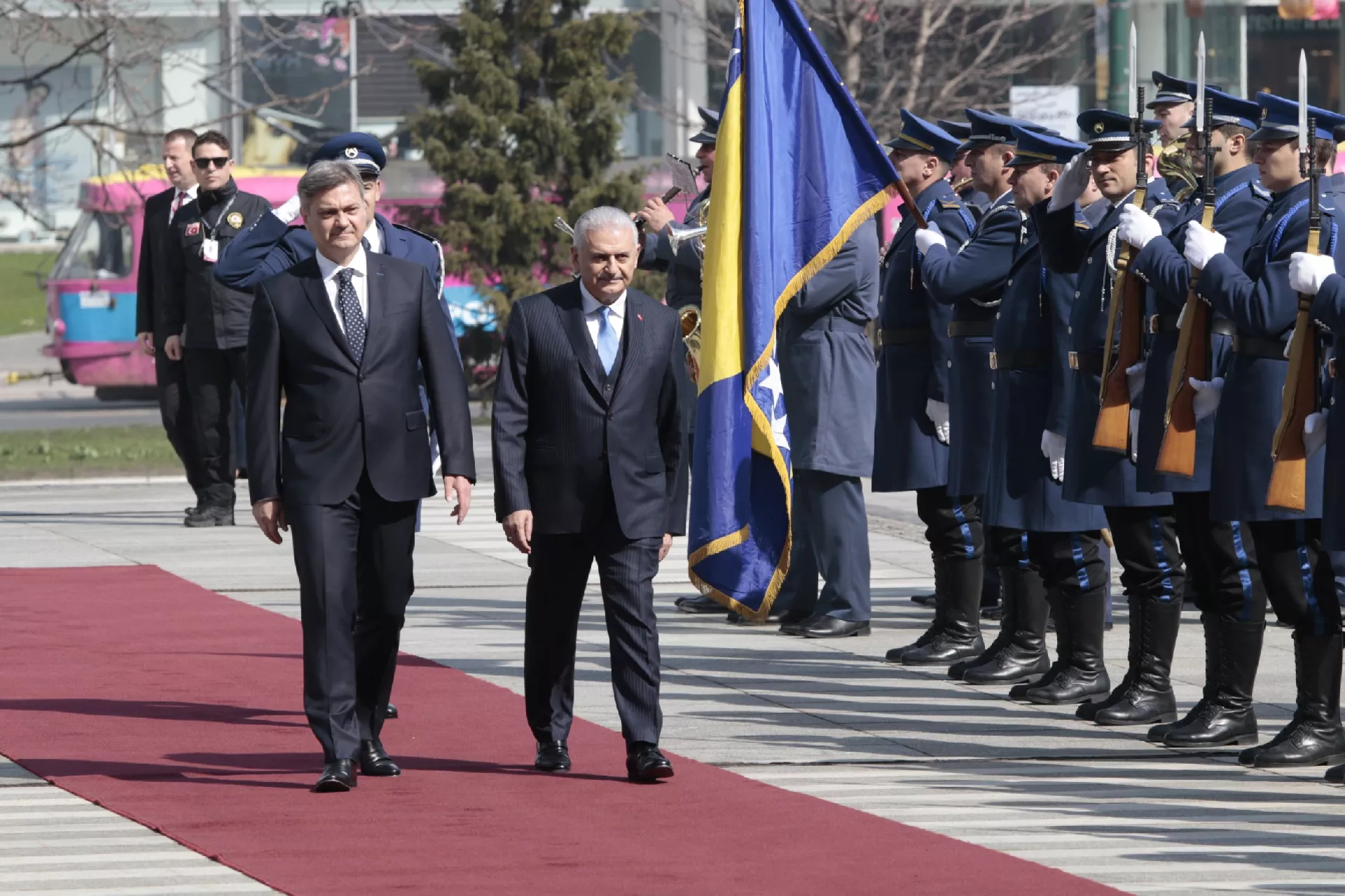 Na platou ispred zgrade institucija Bosne i Hercegovine upriličen je svečani doček za premijera Republike Turske Binalija Yildirima