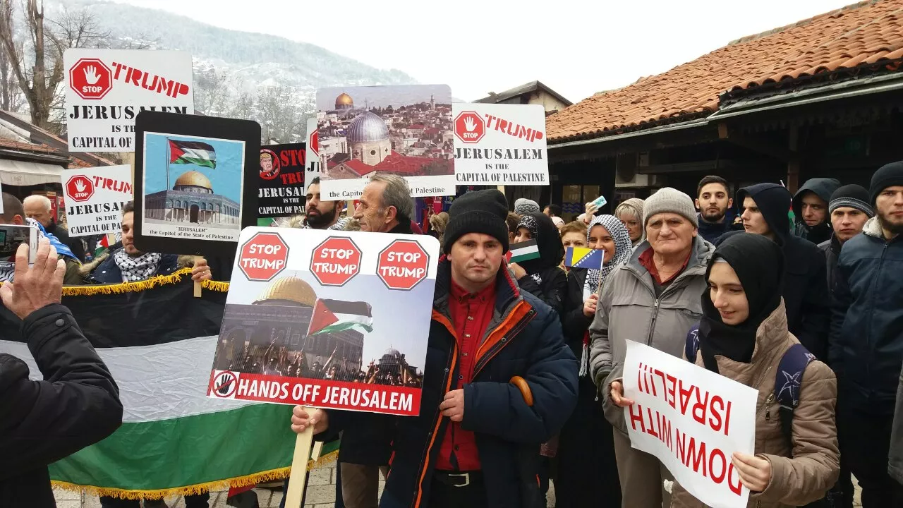 SARAJEVO, (Patria) - Više od stotinu građana i predstavnika brojnih udruženja okupilo se danas u Sarajevu na mirnim protestima protiv odluke odluke predsjednika Sjedinjenih Američkih Država (SAD) Donalda Trumpa da Jerusalem proglasi glavnim gradom Izraela.