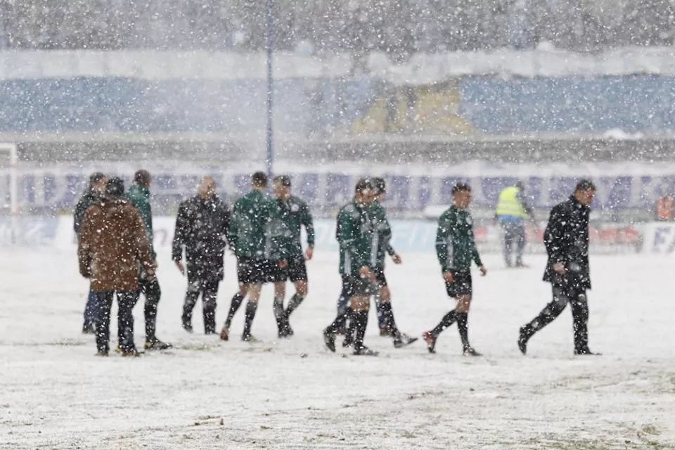 Pred današnju utakmicu u glavnom gradu BiH prvo je padala kiša, a onda je počeo padati snijeg, što je napravilo velike probleme organizatorima utakmice.