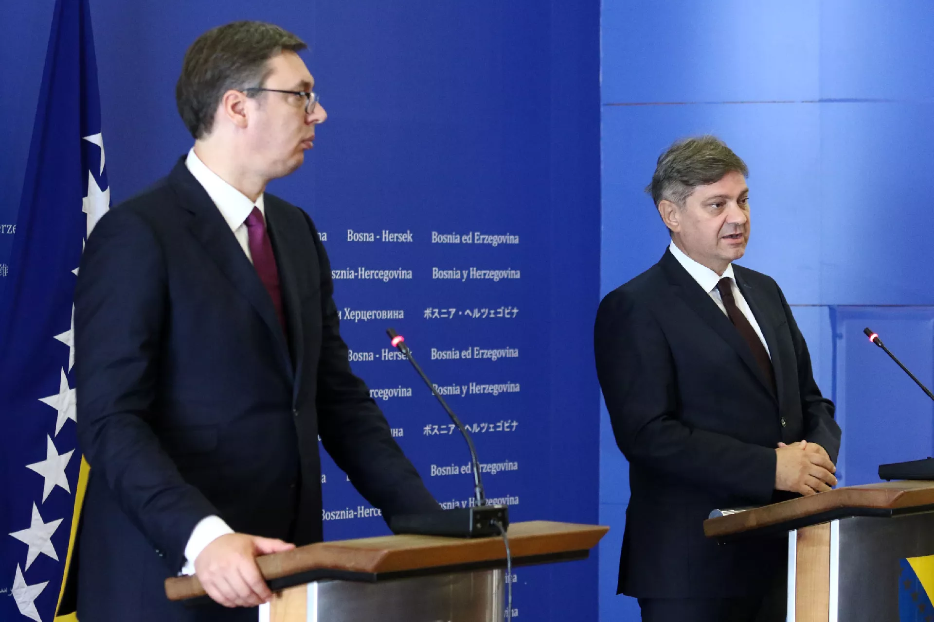 Nakon sastanka srbijanskog predsjednika Aleksandra Vučića u zgradi Parlamentarne skupštine BiH sa članovima kolegija oba doma Parlamentarne skupštine BiH i predsjedavajućeg Vijeća ministara BiH Denisa Zvizdića, održana je konferencija za medije.