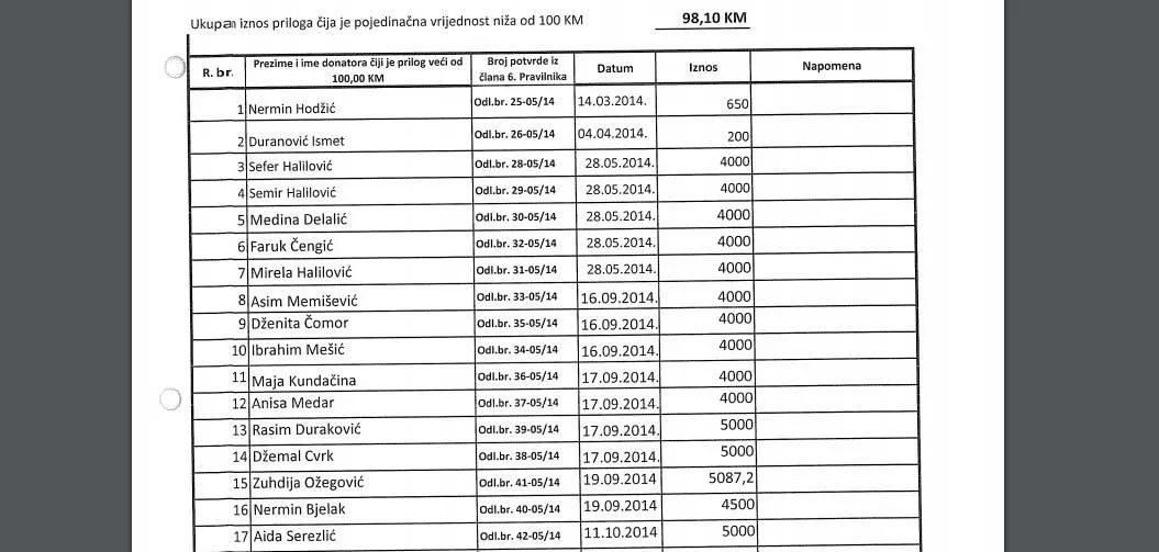 U dokumentima objavljenim na stranici Centralne izborne komisije (izbori.ba) u dijelu donacije političkih partija vrlo lako mogu se naći donatori i imena onih koji uplaćuju sredstva za političke subjekte.