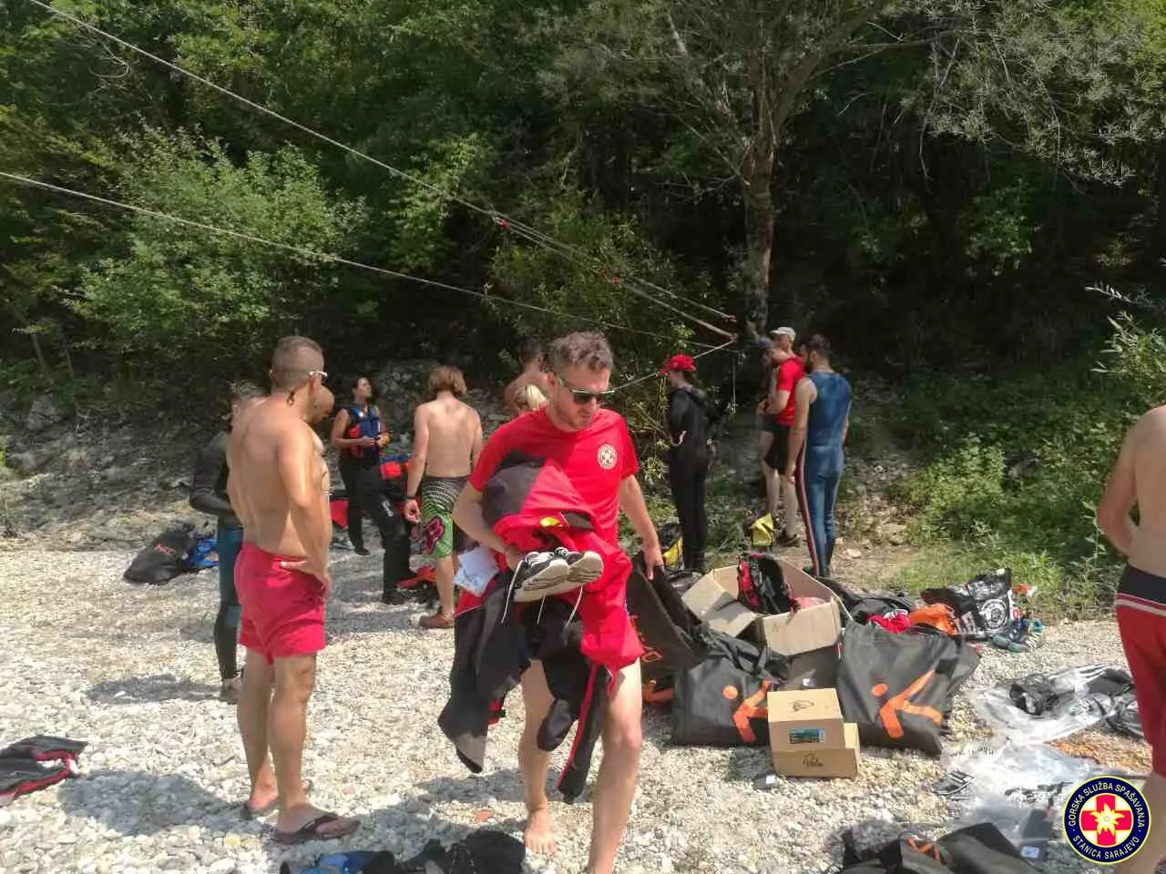 Nakon podizanja kampa i pripreme opreme za predstojeće vježbe, u subotu ujutro se pristupilo vježbama spašavanja na brzim vodama, kojima je prethodila montaža Tirolske žičare na jako nepristupačnom terenu.