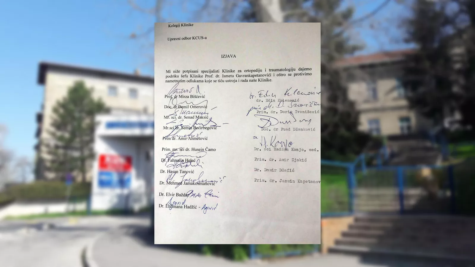„Mi potpisani specijalisti Klinike za ortopediju i traumatologiju dajemo podršku šefu Klinike prof. dr. Ismetu Gavrankapetanoviću i oštro se protivimo nametnutim odlukama koje se tiču ustroja i rada naše Klinike“, navodi se u pismu upućenom upravi KCUS-a.
