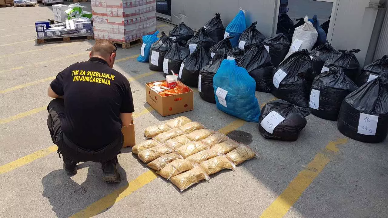 Prilikom izvršenih pretresa pronađen je sitno rezani duhan bez akciznih markica čija vrijednost na tržištu isnosi cca 43.000 KM.