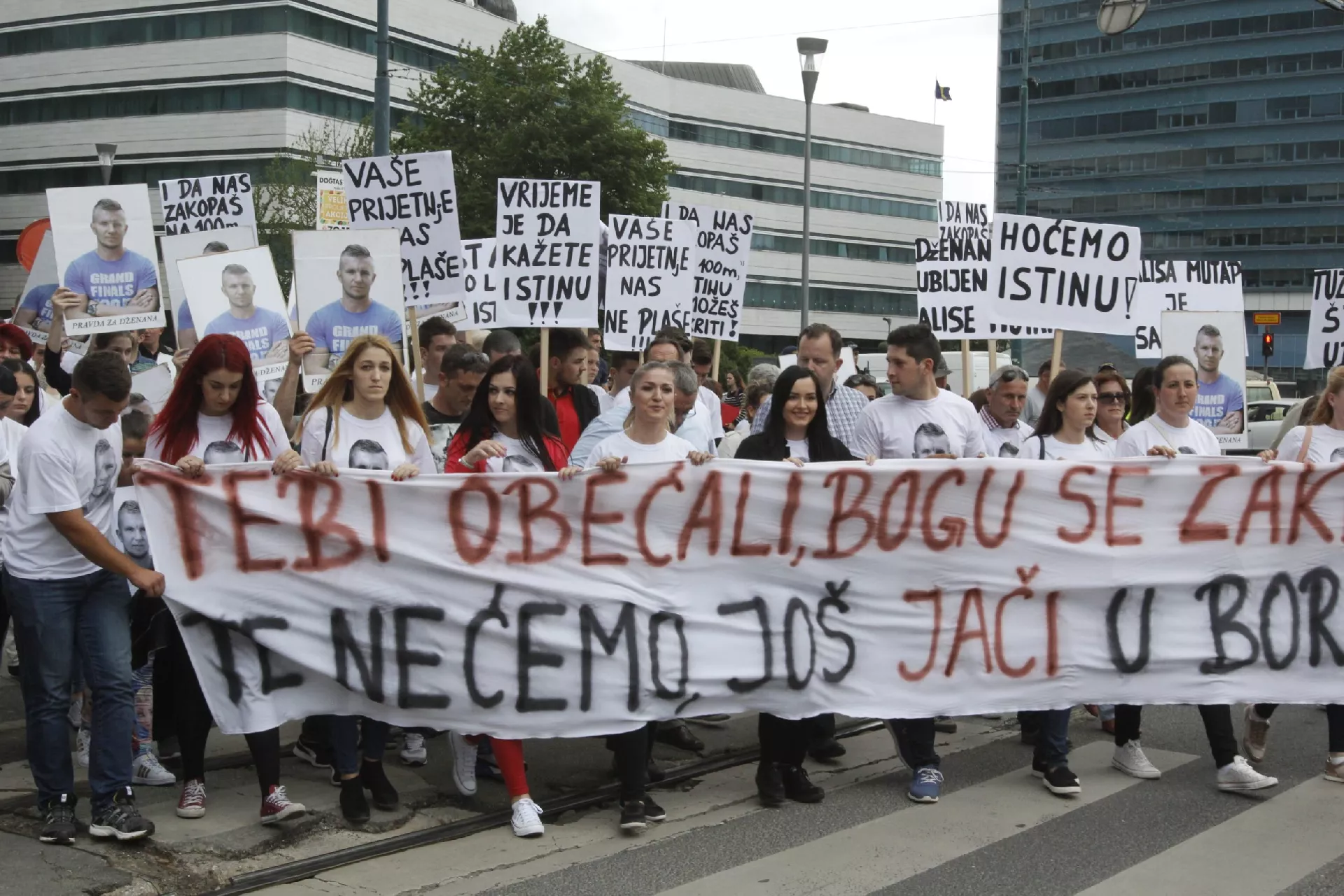 Nekoliko stotina građana, prijatelja, članova porodice nosilo je transparente "Pravda za Dženana Memića" i "Istina za Dženana". Otac Muriz Memić kazao je da od početka tvrdi da je Dženan ubijen.