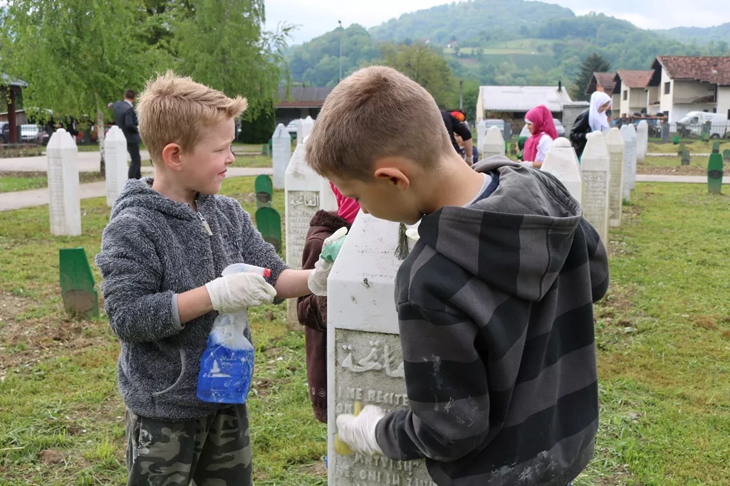 Nakon proučene fatihe djeca su, zajedno sa odraslima, sudjelovala u akciji čišćenja mezarja i pranja nišana.