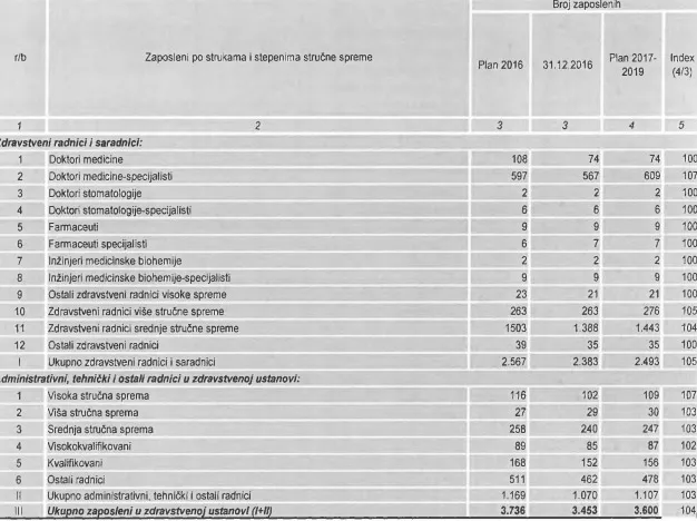 Prema tabeli koja je navedena u izvještaju 31.12.2016. godine bilo je 74 doktora medicine, a za naredni period nije planirano novo upošljavanje doktora. Krajem prošle godine bilo je 567 doktora medicine specijalista, a planirano je za ovaj period da ta brojka bude 609. To znači da želi uposliti 42 doktora što je jasan pokazatelj koliko je KCUS u deficitu s kadrovima. Samo tokom prošle godine sa KCUS-a je otišlo više od 35 uglednih ljekara, profesora. Iako je direktorica Izetbegović tvrdila da KCUS nema problema zbog odlaska ljekara te da je i ona dovela 26 ljudi, jasno je da praksa pokazuje sasvim nešto drugo.