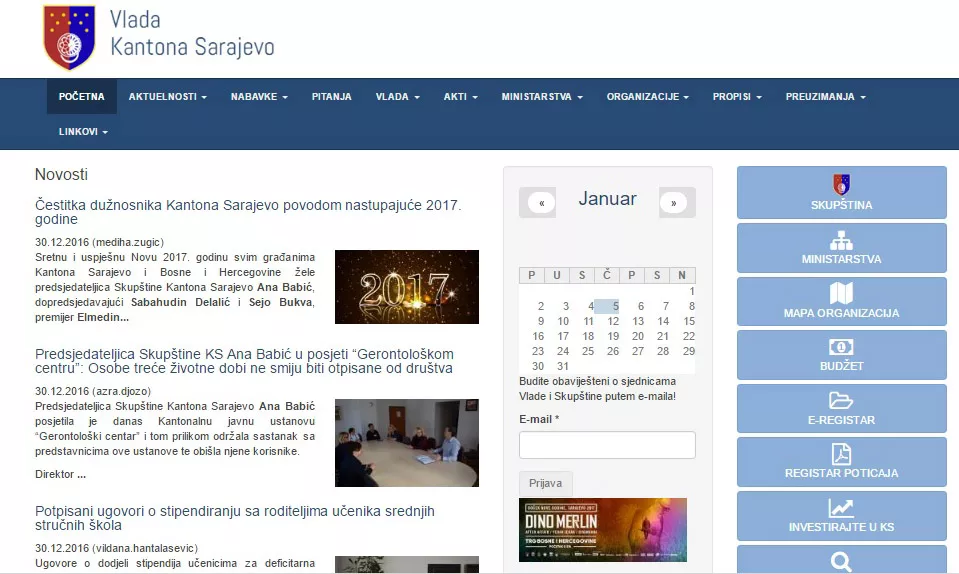 Iako smo već peti dan u 2017. godini za pojedine institucije vrijeme je stalo u prošloj godini. Takav slučaj je i sa Vladom KS, barem sa zvaničnom web stranicom gdje je posljednja objavljena vijest 30. decembra čestitka povodom „nastupajuće 2017. godine“, piše bh. novinska agencija Patria.