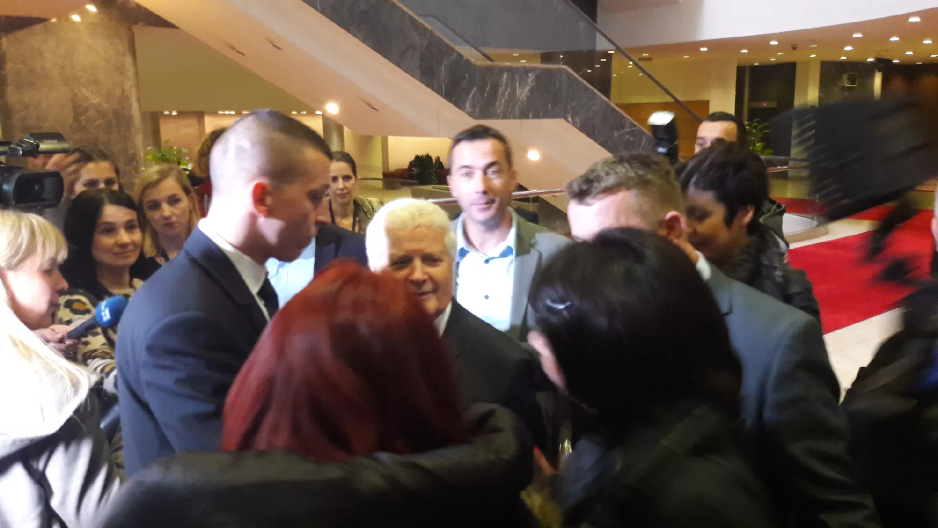 Došao je u pratnji ličnog osiguranja i kćerke Elvire Abdić-Jelenović i osiguranje Parlamentarne skupštine imalo je pune ruke posla s obzirom na veliki broj novinara koji su željeli popričati s njim.