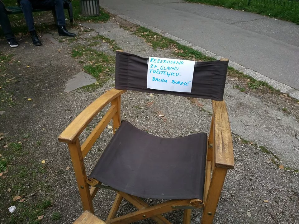 Simbolično su na jednu praznu stolicu stavile papir na kojem je ispisano ime tužiteljice Burzić.