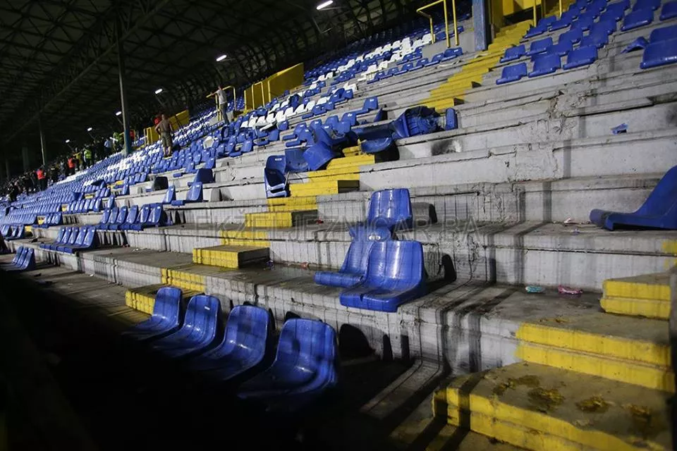 Dio sjeverne tribine na stadionu Grbavica gdje su bili navijači FK Sarajevo skupina Horde zla uništen je nakon što su čupali stolice, bacali ih i palili, piše bh. novinska agencija Patria.