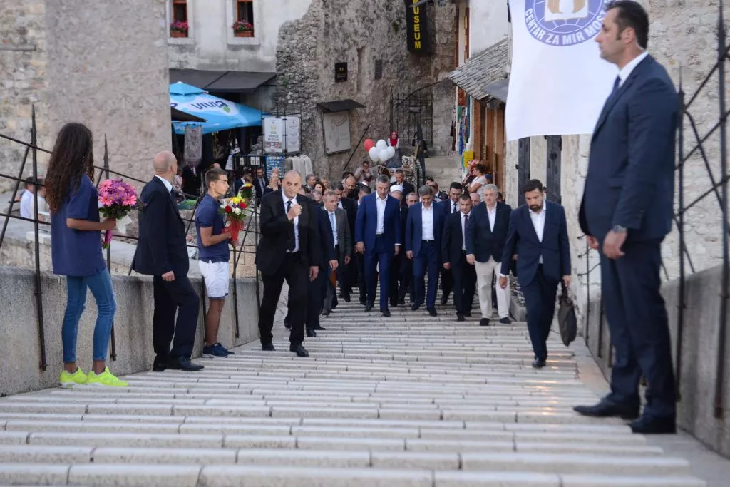 Đukanović je poručio da BiH ima podršku Crne Gore na evropskom putu. Sa Starog mosta u Neretvu je bačeno cvijeće u znak mira.