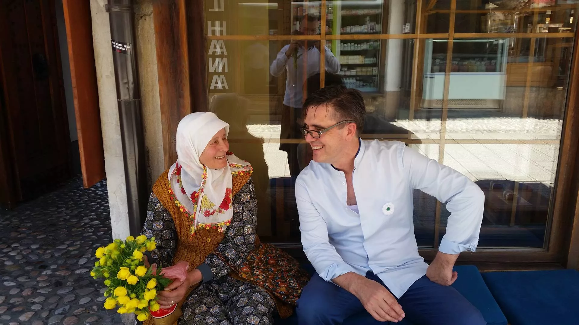Svi pokreti su joj odmjereni, aristokratsko držanje kakvo se rijetko vidi, a i kao ona prva ima smisla za šalu. Ruži me u šali što sam stavio sliku na Facebook, pa joj kona rekla da je vidjela na internetu. Cvijeće kupuje po četiri i po marke i prodaje po šest.