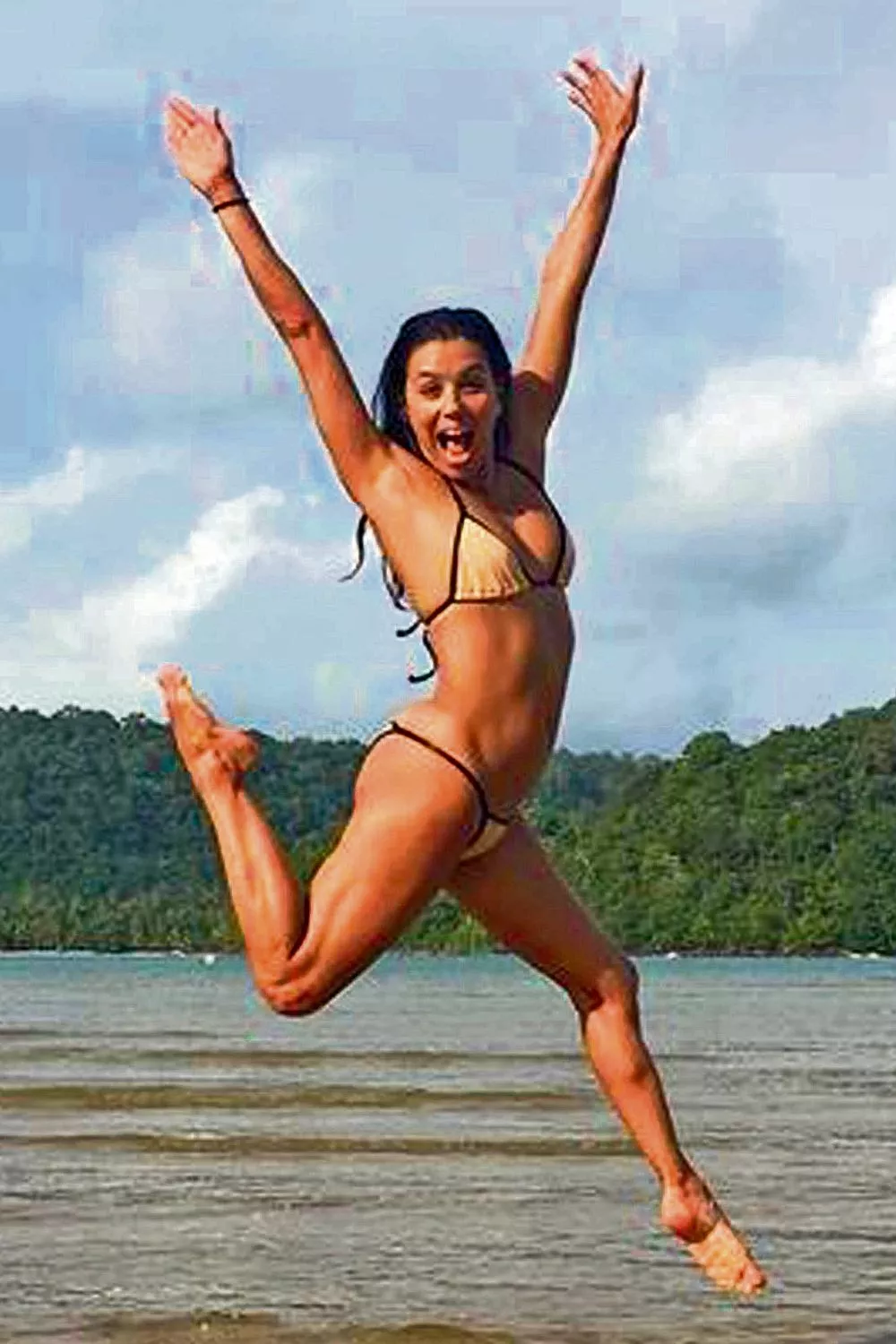 Zvijezda je jednostavno označila fotografije sa „#honeymoon“ i podijelila prizore sa predivnih plaža i starih hramova. Na jednoj od fotografija, bivši lik iz „Očajnih kućanica“ skače u zrak u crno-bež bikiniju.