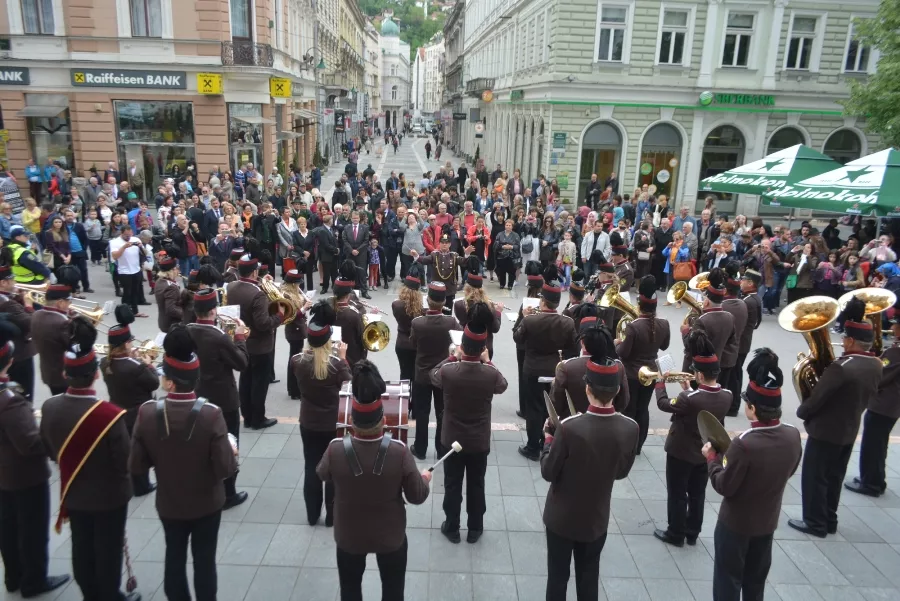 Nakon što su u Vijećnici gradonačelnici Sarajeva Ivo Komšić i Bad Ischla Hannes Heide potpisali Sporazum o saradnji dva grada, Limeni orkestar je iz najreprezentativnijeg zdanja grada Sarajeva iz austrougarskog perioda, prodefilovao starim dijelom grada prema Katedrali.
