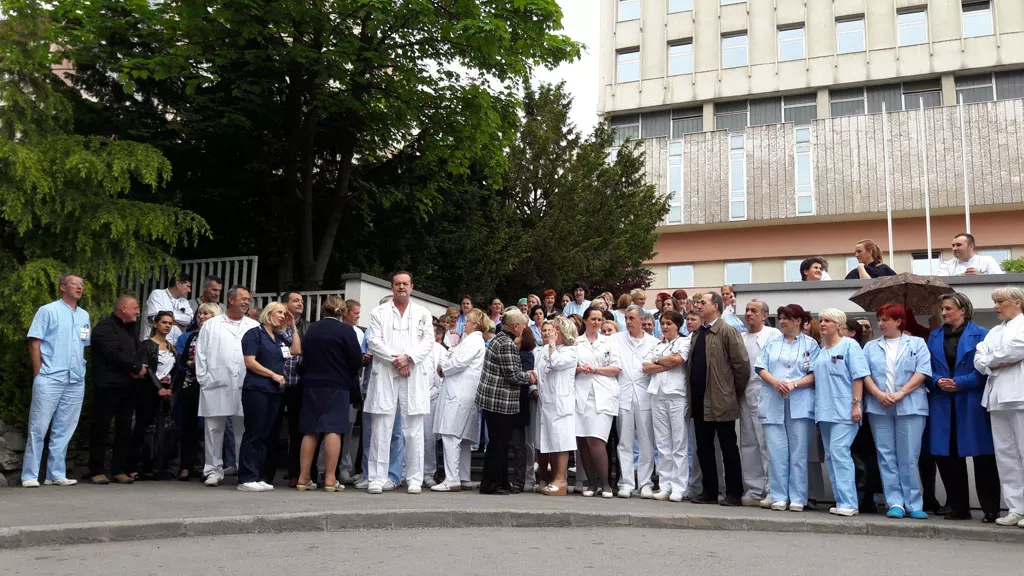 Prije 24 godine, Abdulah Nakaš je kazao: “Dok je kamen na kamenu, bolnica će raditi", a danas su okupljeni raširili transparent s istom porukom. No, zanimljivo je da v.d. direktora Sead Bašić nije prisustvovao obilježavanju Dana Opće bolnice.