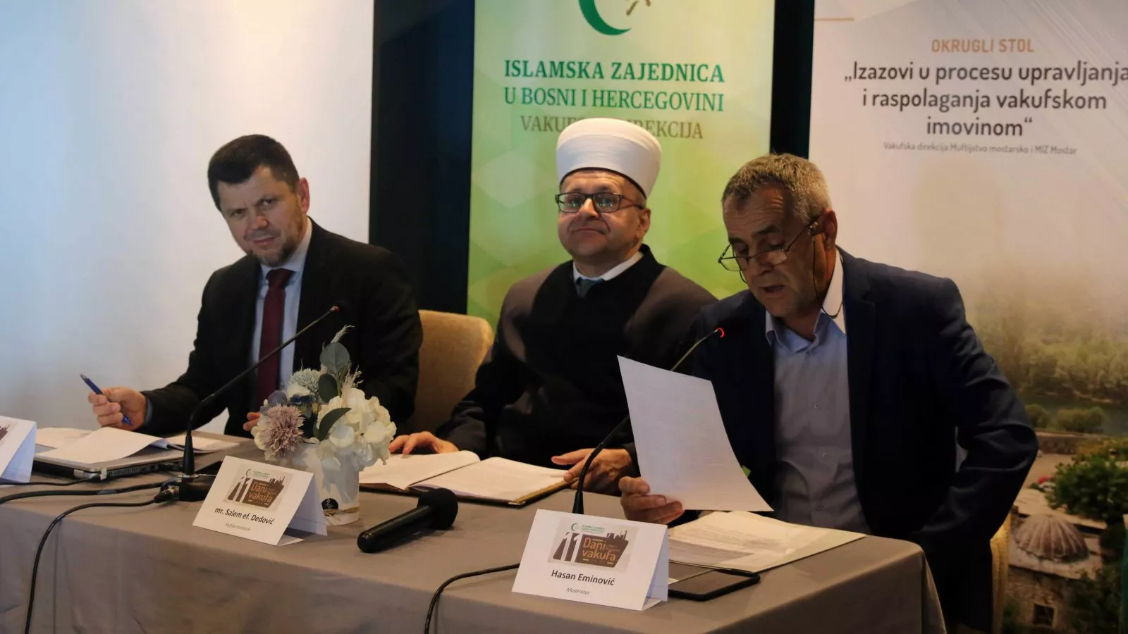 SARAJEVO, (Patria) - U organizaciji Vakufske direkcije u Bosni i Hercegovini, Mostarskog muftijstva i Medžlisa Islamske zajednice Mostar, danas je u Podveležju održan okrugli sto o temi "Izazovi u procesu upravljanja i raspolaganja vakufskom imovinom".