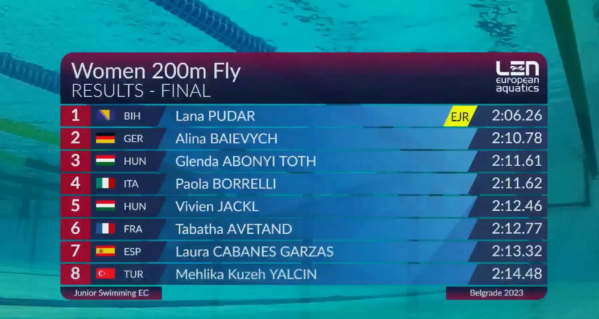 (Patria) - Najbolja bh. plivačica Lana Pudar osvojila je danas i drugo zlato na Evropskom juniorskom prvenstvu u Beogradu!