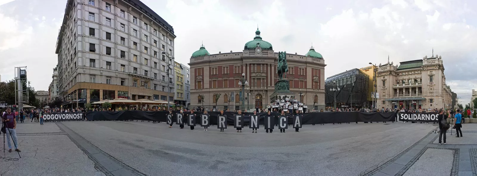 (Patria) - Povodom 28. godišnjice genocida u Srebrenici, Žene u crnom, nevladina organizacija i Fond za humanitarno pravo organizovali su večeras stajanje u crnini i ćutanju na Trgu Republike u Beogradu, od 19:30 do 20:30. Tom prilikom izvedena je i scenska akcija “Nikada nećemo zaboraviti genocid u Srebrenici”.