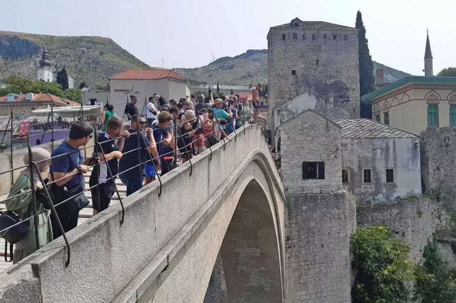 (Patria) - Skokom bez aplauza Emila Tire iz Kluba skakača u vodu “Mostari”, u 11 sati i 7 minuta sa Starog mosta u Neretvu, simbolično je odana počast žrtvama genocida u Srebrenici 1995. godine.