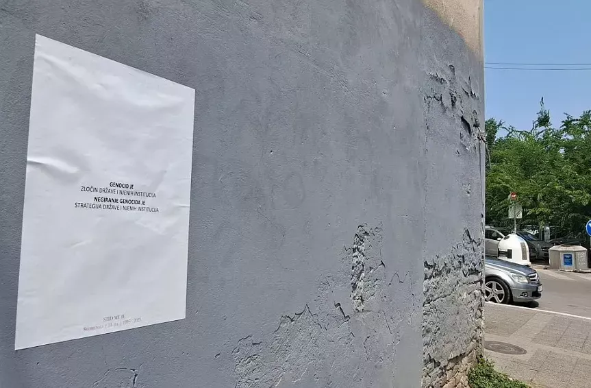 Na više lokacija u Novom Sadu pojavili su se leci, zalijepljeni na fasade povodom obilježavanja 28 godina od genocida u Srebrenici.